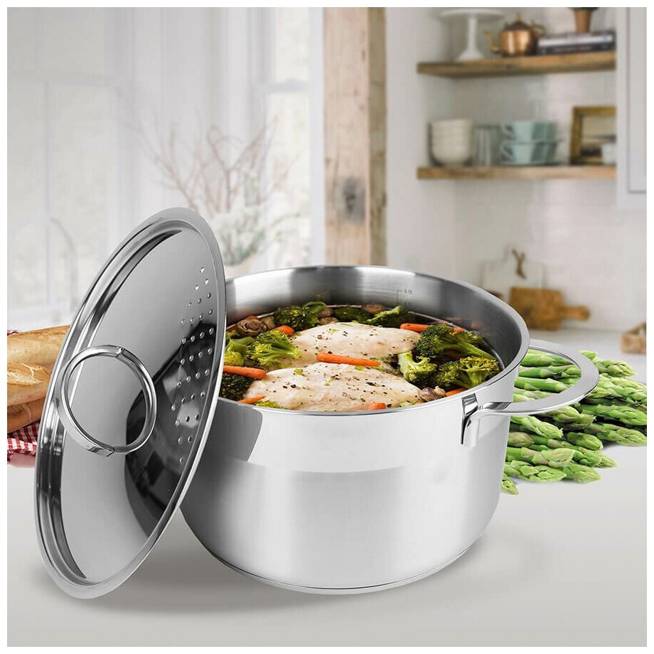 Для разных материалов она может быть различной, но для обычной кастрюли из нержавеющей стали стенки не должны быть тоньше 0,5 мм. Важно, чтобы у кастрюли из любого материала было толстое дно – тогда еда не будет пригорать.