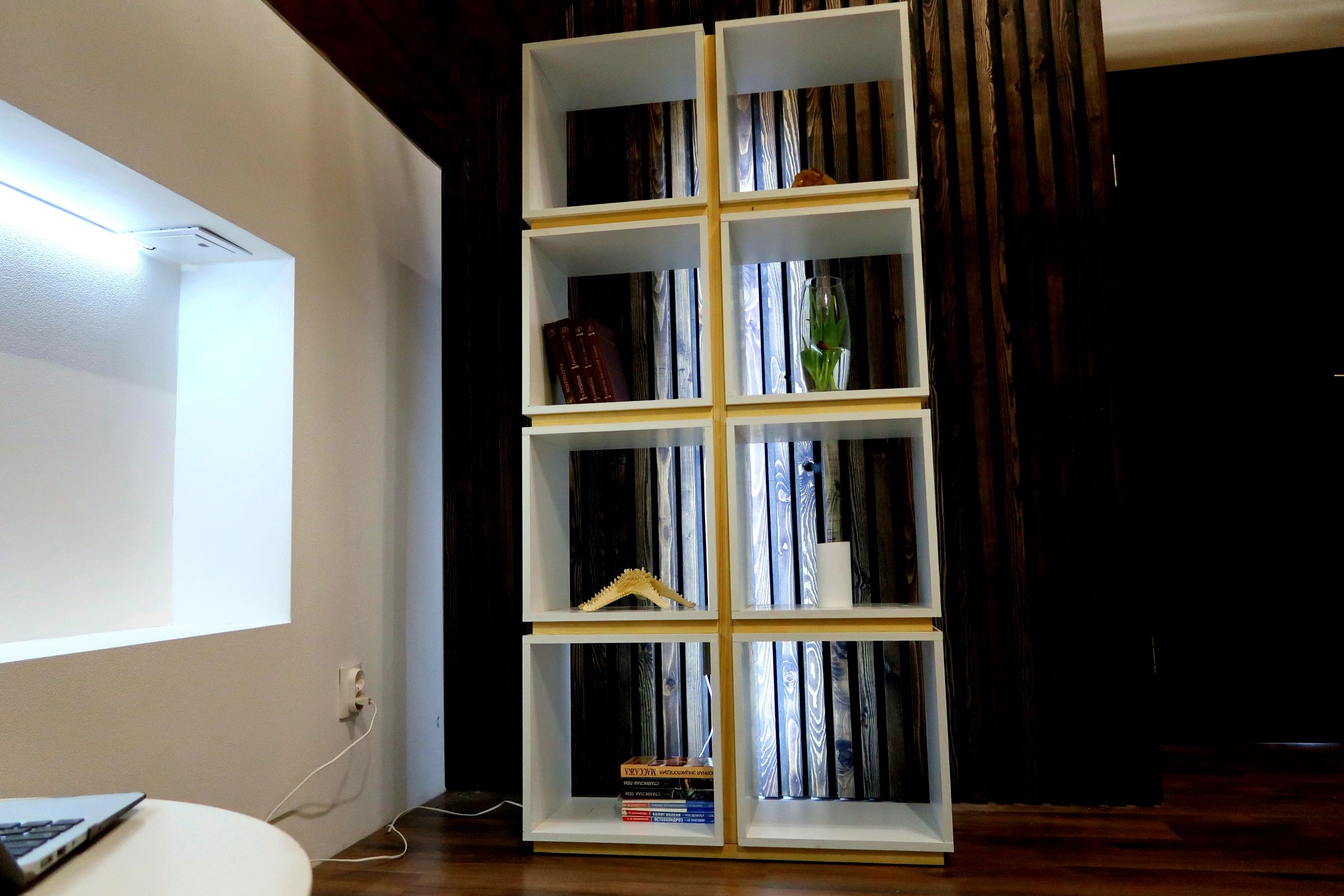 Но этот, с неровными держателями для книг, очень аккуратный.