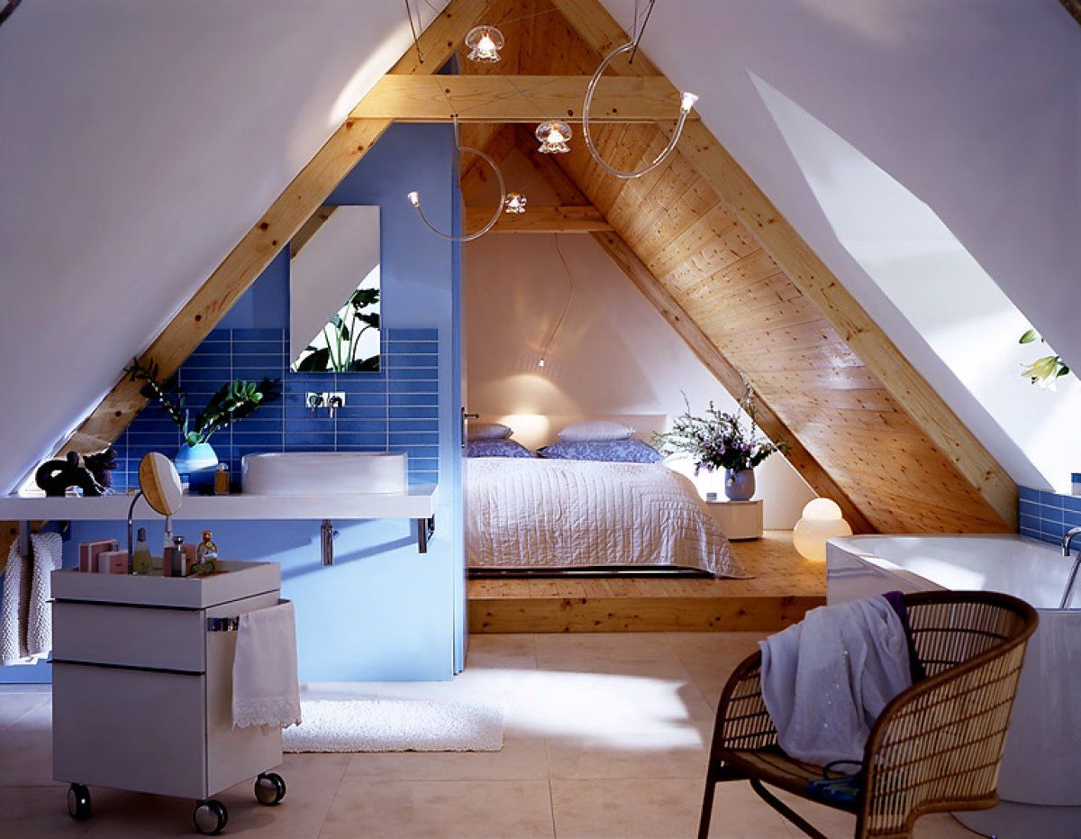 Количество комнат зависит от площади чердака. И чем она больше, тем больше можно приложить фантазии, создавая что-то оригинальное и необычное. Сегодня, используя современные технологии и материалы, не проблема на чердаке организовать кухню, ванную и туалет.