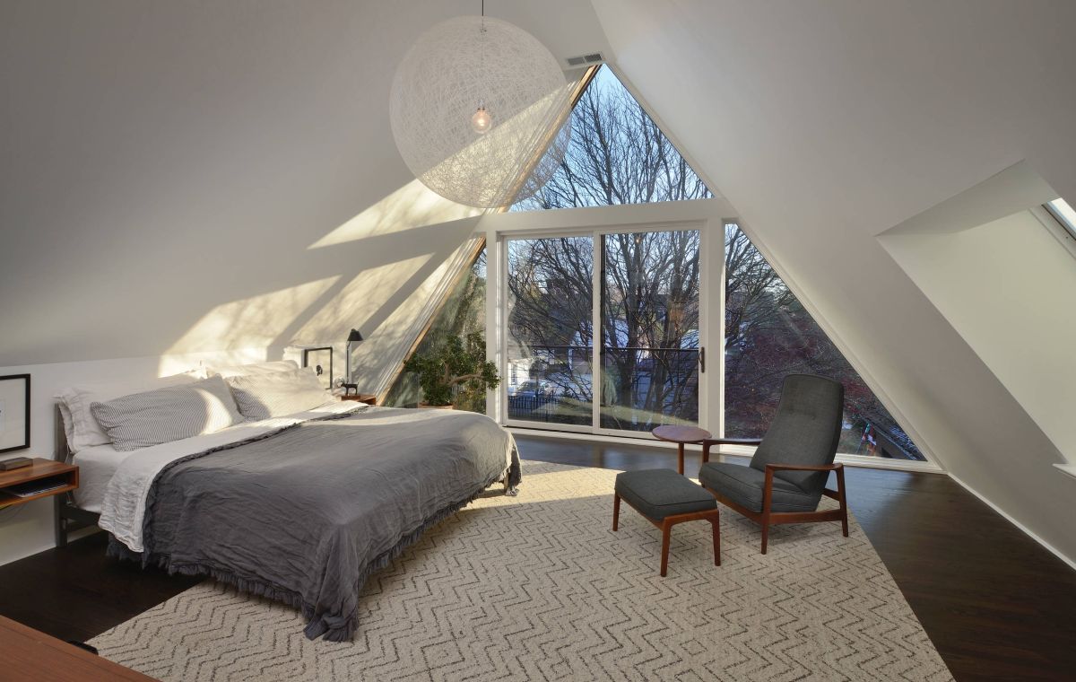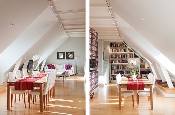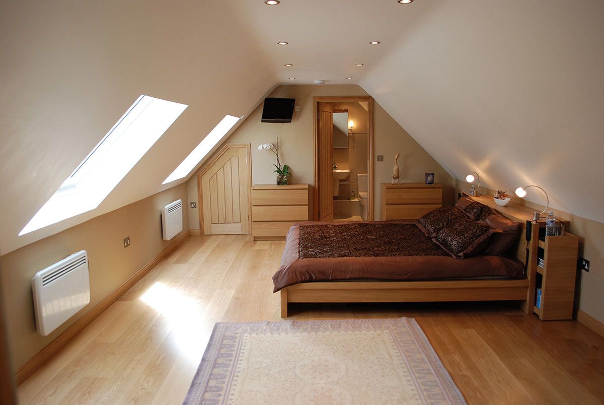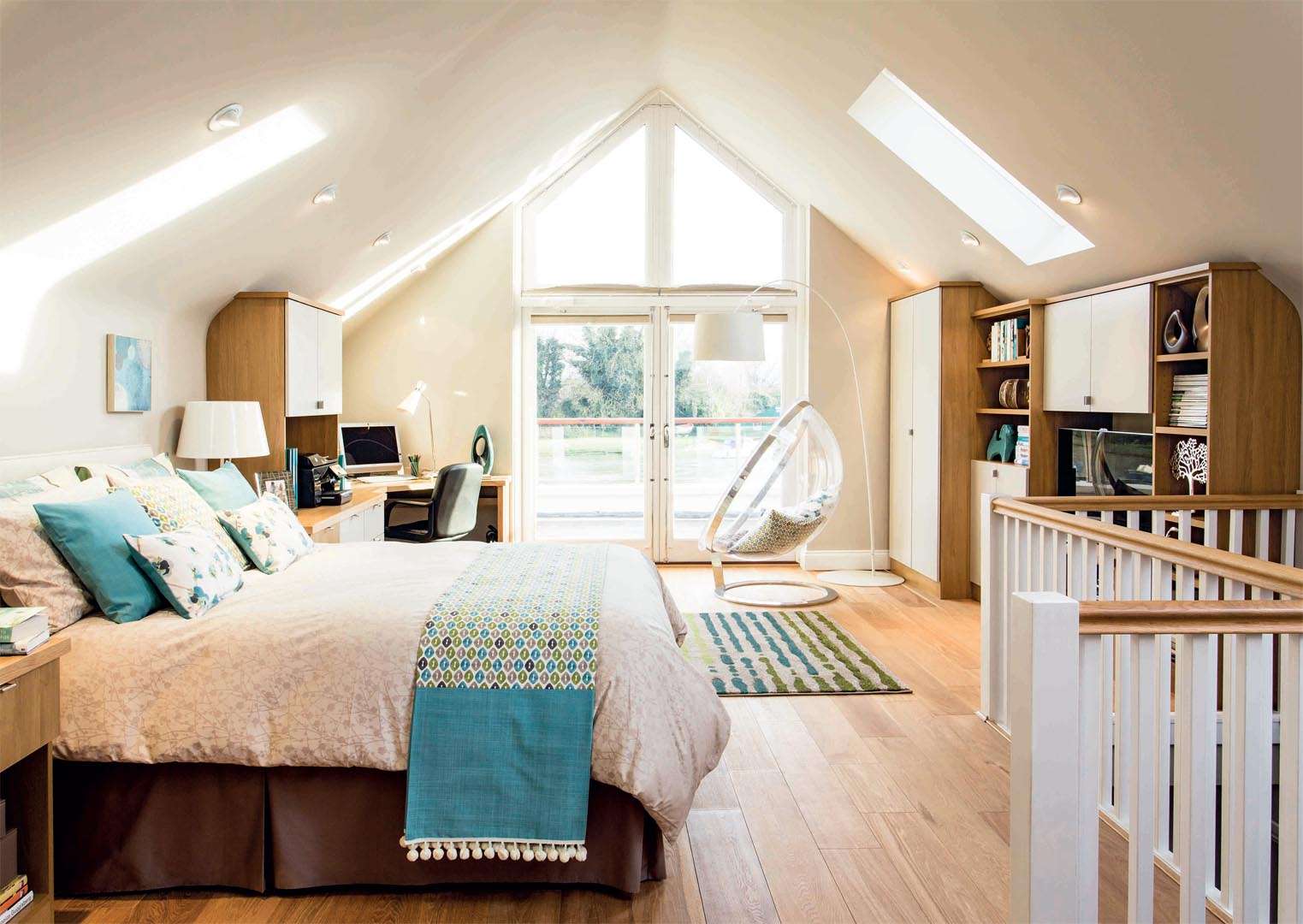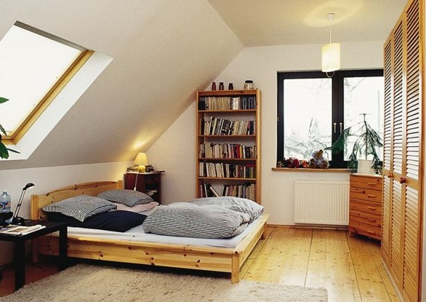 В небольших загородных домах под крышей можно устроить всего лишь одно помещение. В этом случае на чердаке организуют просторную спальню. При этом кровати устанавливают под скатами, а остальное свободное пространство с высокими потолками оставляют для прохода. Но это всего лишь одна стандартная идея. А их немало. К примеру, в комнате на чердаке под крышей можно организовать комнату отдыха, поставив бильярд. Можно организовать кабинет, библиотеку или кинозал. Вариантов настолько много, что выбирать иногда становится сложно.