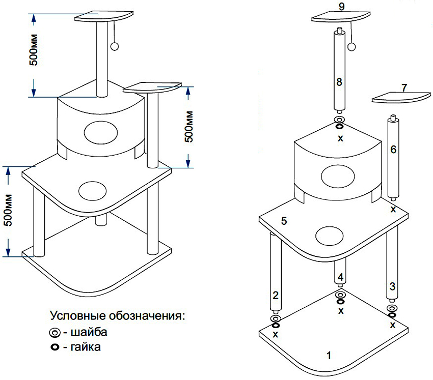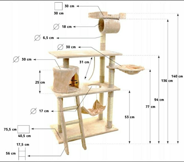 Кошачий комплекс может состоять из нескольких элементов, которые изготавливаются из различных подручных материалов. Поэтому: