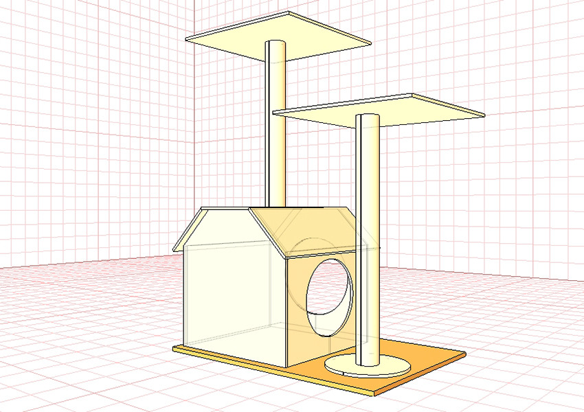 После этого можно приступать к проектировке кошачьего домика. При этом необходимо учитывать, что кошки бывают разной породы и могут отличаться размерами, хотя и не значительно. Конструкция домика так же зависит и от того, какой полезной площадью нужно пожертвовать для домашнего питомца.