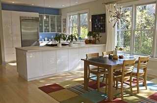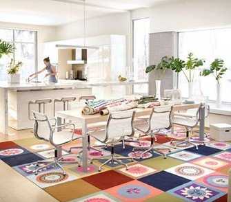 Ковры могут быть использованы для разделения пространства кухни. Например, Вы можете легко отделить рабочую зону от столовой с помощью двух различных ковров. Если Вы решите использовать больше чем один ковер, не забудьте выбрать ковры для кухни разных размеров, потому что ковры одинакового размера визуально разделят помещение пополам.