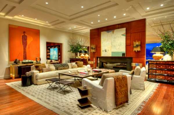 Главная комната дома, место приема желанных гостей и сбора домочадцев. Постелить красивый шерстяной ковер в интерьере гостиной – самый надежный способ создать здесь атмосферу, в которой ощущается присутствие роскоши и домашней теплоты. Этот аксессуар обладает удивительной особенностью делать уютным даже необжитое пространство. С ним намного комфортнее, с его помощью легко обозначить зону отдыха, он может стать “изюминкой” интерьера. Использование коврового шедевра – удачный способ внести в убранство помещения дизайнерский элемент, а если он при том еще и большой, то вам и вашим гостям становится доступным богемский шик.