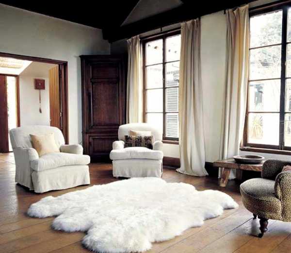 Удивлены, что классика может быть современной? Да, традиционный интерьер склонен адаптироваться ко времени, каким бы универсальным он ни был. На сегодняшний день классика допускает замену традиционного ковра шкурой. Шкуры на полу смотрятся отлично, добавляя пространству уюта и комфорта. Вы можете использовать как дорогие натуральные шкуры, так и искусственные аналоги, которые ничем не хуже настоящего меха.