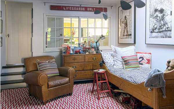 Современный ковёр с простым графическим рисунком добавит в интерьер детской некоторый динамизм. Хотя узор и замысловатый, его небольшой масштаб выглядит вполне уместно и не подавляет другие элементы декора.