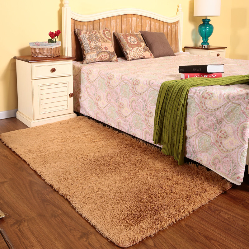 - На пушистом ковре или ковре с длинным ворсом нельзя ставить кровать или столик с широкими и плоскими ножками. Они оставляют на ворсе потёртости. В этом случае или обратите внимание на кровать с тонкими ножками или на несколько пушистых ковриков, которые вы расположите по периметру кровати, а не под ней.