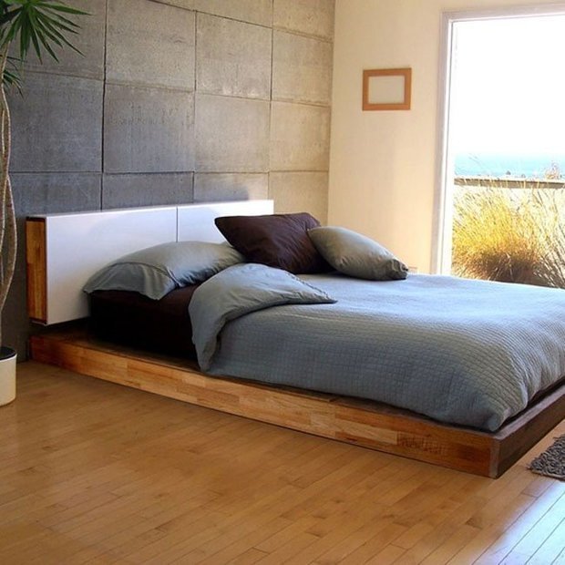 Этот способ требует предварительной подготовки, но это того стоит. Нужно сшить специальный постельный текстиль: пару подушек, прямоугольник для ног и юбочку. Лучше если все это будет одного цвета или оттенка. Юбочка надевается прямо на основание кровати