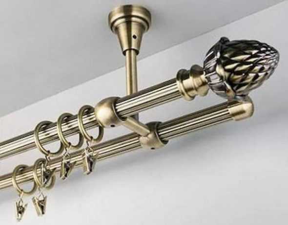 Металлический карниз производится из металла и представляет собой штангу с потолочным креплением, по которой перемещаются шторы