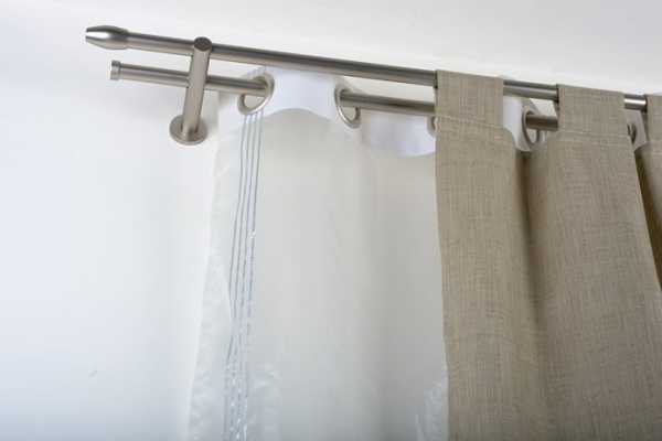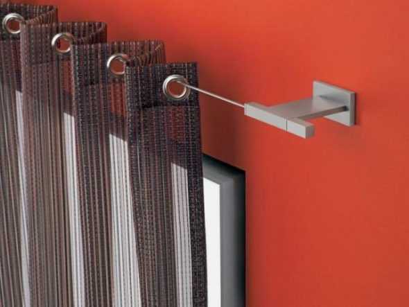 Такой вид крепления для карнизов для штор подойдет в тех случаях, когда полотно снимается со штанги просто.