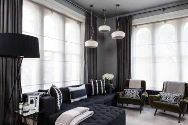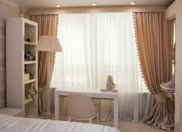 С помощью трехрядных карнизов можно собрать уникальные сочетания штор и тюля, дополненных красивыми ламбрекенами