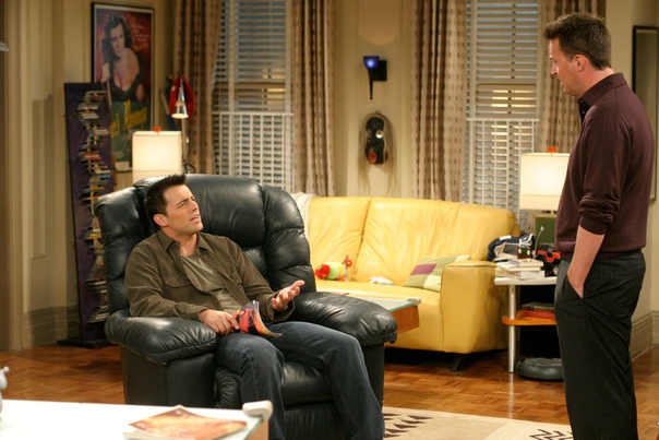 В квартире Джоуи и Чендлера есть две точные копии коричневых баркалонжеров (тот, который превратил их в «домоседов» во втором сезоне).Мэтью выразил свою неприязнь к стульям в REUNION.