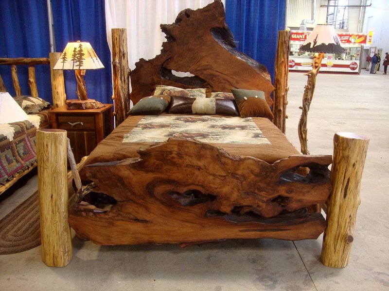 - Еще один вариант кровати. Здесь уже не только коряги, но и цельные части дерева.