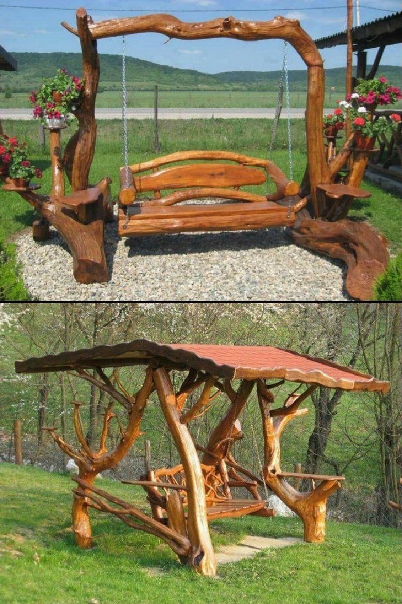 Бревенчатая мебель подойдет к любому интерьеру дачи, особенно если ваш участок оформлен в стиле кантри.