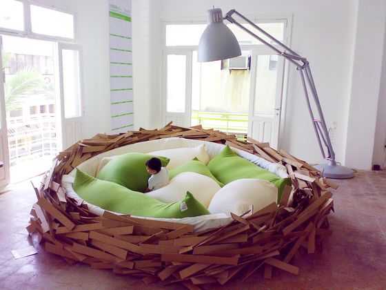 Кровать-гнездо. На первый взгляд громоздкая и неказистая модель кровати на самом деле создает комфорт и уют для ее хозяина, сравнимый с уютом гнезда для птенцов.