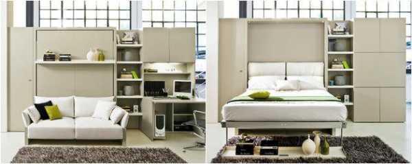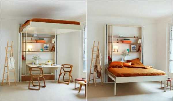 Для тех, кто стремиться освободить больше места в квартире, замечательно подойдет кровать, которая, сворачиваясь, поднимается к потолку. Ночью же она так же свободно опускается вниз и дает возможность отдохнуть. Помимо удобства, такая кровать имеет еще и яркий дизайн. Такой же функциональной является и кровать-шкаф, которая при желании достаточно просто превращается в книгохранилище, откидываясь к стене.