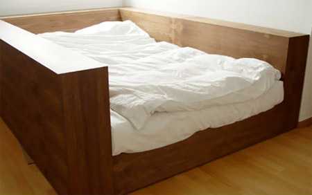 Необычные функции Как ни странно, но порой кровать может быть необычна и своими функциями. Многие бескаркасные кровати днём превращаются в кресла. Некоторые кровати включают в себя целые системы хранения, а иногда и дополнительное спальное место вторым ярусом; нередко встречается и сочетание кровати со столом в одном предмете мебели.Ещё одна необычная кровать — модель, являющаяся своеобразным «индикатором чувств». Спальное место изогнуто, а изголовье представляет собой сердце, состоящее из двух частей. Когда влюблённые ссорятся и спят по разные стороны кровати, изголовье распадается напополам.