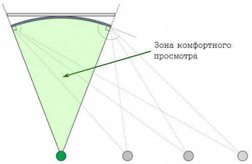 Если телевизор будет смотреть целая компания. А возможность сидеть в лучшем центральном месте есть только у одного пользователя, то различные эксперименты показывают, что комфортных точек для просмотра в случае как прямых, так и вогнутых экранов достаточно мало. Если человек покидает зону комфортного просмотра, то все заявленные преимущества вогнутого дисплея попросту исчезают.