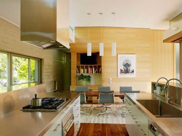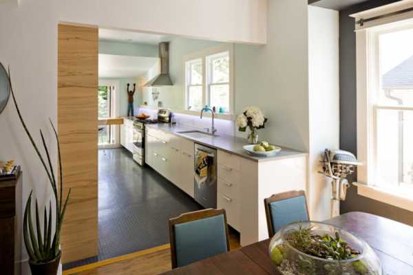 Совет: заранее определитесь с протяженностью рабочей зоны; решите, как ее расположить по отношению к той части помещения, которая используется, как столовая.