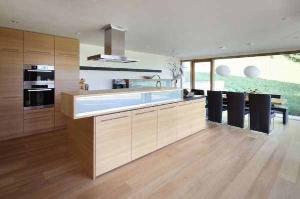Модным вариантом считаются островные кухни с универсальными рабочими поверхностями, использующимися не только для готовки, но и для приема пищи. При декорировании интерьера кухни, объединенной с гостиной, остров послужит границей между зонами.