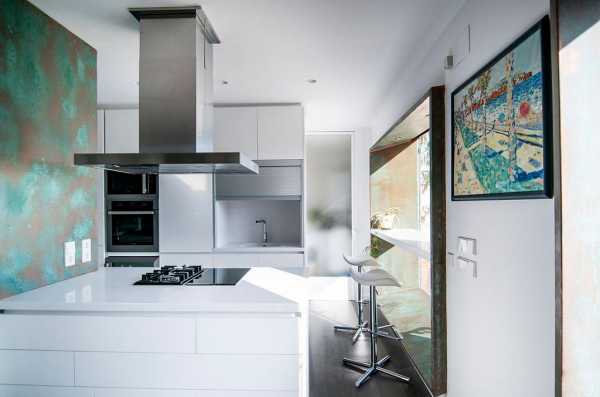 Все фото На фото: Светлая кухня в стиле модернВенецианская штукатурка с легким благородным блеском, которая хорошо гармонирует с мрамором и натуральным деревом, идеально подходит на роль основной отделки в современной кухне. Главное – подобрать штукатурку в цветовой гамме интерьера, отдав предпочтение наиболее светлому оттенку.