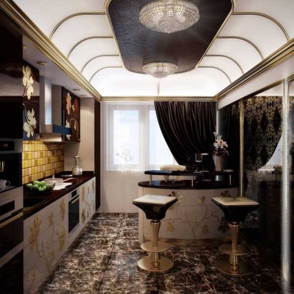 Многим собственникам кухонь нравится роскошь, так что если вы хотите выдержать шик, характерный для дорогостоящего направления модерна, включите позолоту в дизайн кухонного помещения (металлизированные детали в оформлении фасадов, отдельных мебельных элементов).