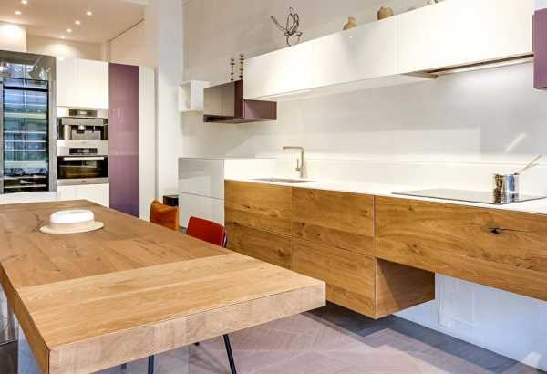 В традиционном дизайне кухни в стиле модерн часто присутствуют поверхности их дерева. Если бюджет позволяет, купите качественную меблировку, изготовленную из настоящего массива древесины.