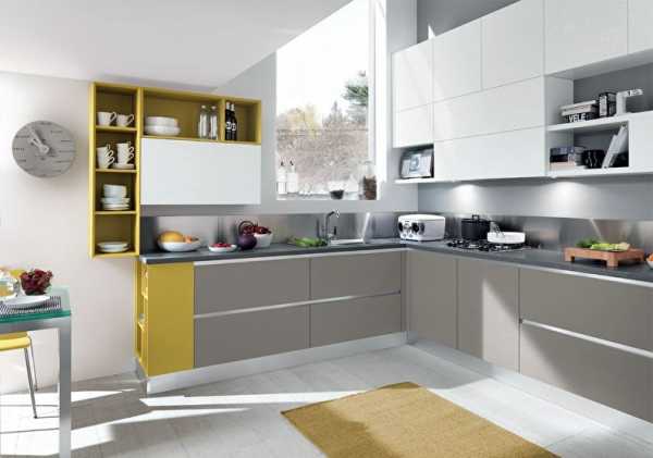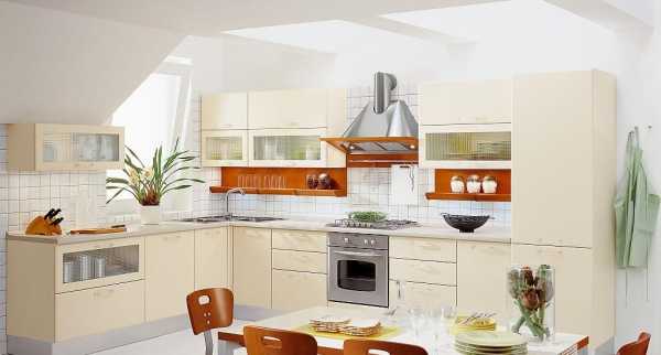 Для удобства размещения посуды, кухонных приспособлений, приборов, продуктов и разных мелочей, в гарнитуре должны быть предусмотрены вместительные полки, выдвижные ящики, вертикальные и угловые решетки, радиусные конструкции.
