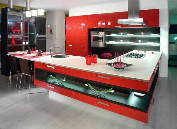 Красная кухня в стиле модерн
