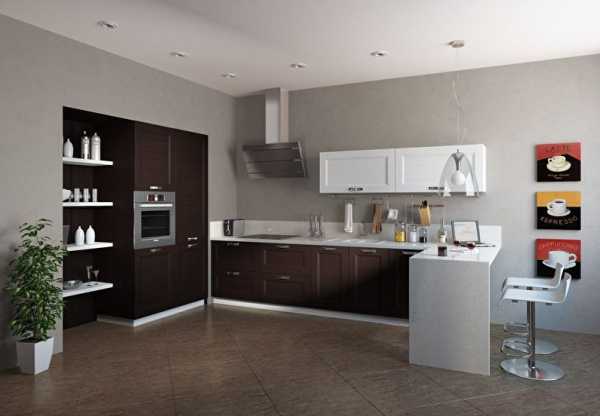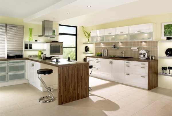 Не менее популярна мебель полуостровного типа либо с барной стойкой, продолжающей рабочую поверхность.