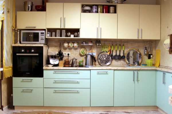Угловая версия кухни позволит выгодно обыграть фасады мебели, используя для этого ненавязчивые рисунки или цветовые сочетания. Подробнее этот прием можно рассмотреть на фотографиях.
