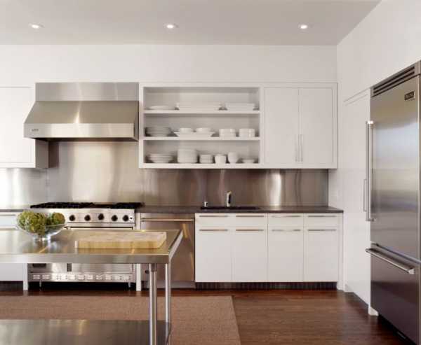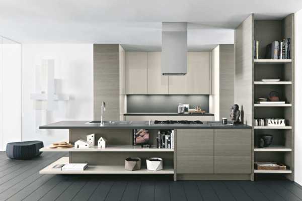 Заказывая мебель, стоит также определить ниши под встраиваемую технику — так кухня в стиле модерн будет выглядеть аккуратно и продуманно. Открытые полки здесь не приветствуются из-за их непрактичности. Допустимы разве что несколько полупрозрачных фасадов из стекла, за которыми можно хранить фужеры и чашки.