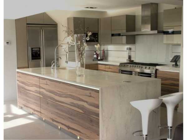 Все фото На фото: Кухня в жемчужных тонах, отделанная мраморомРоскошный полированный мрамор – материал премиум-класса, который с полным правом можно назвать уникальным: он подходит не только для облицовки стен и пола, но и для изготовления столешницы и фартука. А если взять мрамор разных оттенков одного цвета и с различным рисунком, как в кухне модерн на фото, получится уникальный интерьер.