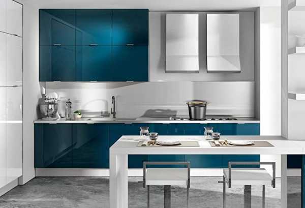 Небесно-голубой, бирюзовый, темно-синий в стиле модерн выглядят футуристически и чем-то походят на интерьер космических кораблей из фильмов. Цвета этой гаммы успокаивают и охлаждают, поэтому они хороши для южных помещений. А еще, по мнению психологов, синий снижает аппетит — значит, в такой кухне будет легче придерживаться диеты.