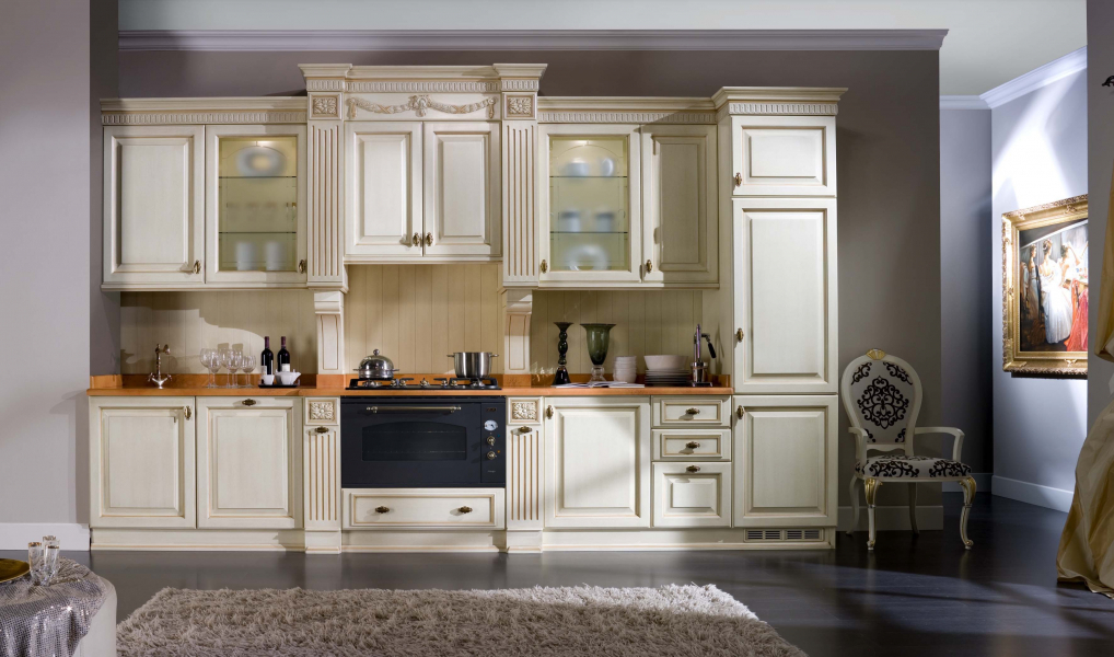 Классический стиль также приветствует вкрапления золотого, хоть дизайн и является строгим и теплым. Чтобы придать интерьеру аристократичности и некой изюминки, заказывайте кухонный гарнитур, выполненный в темно-красном тоне, в то время как рабочая зона будет отличаться элегантностью и светлыми тонами.