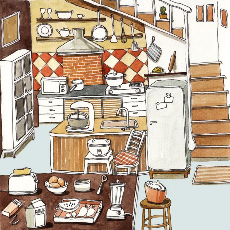 Красивый рисунок обычная кухня.