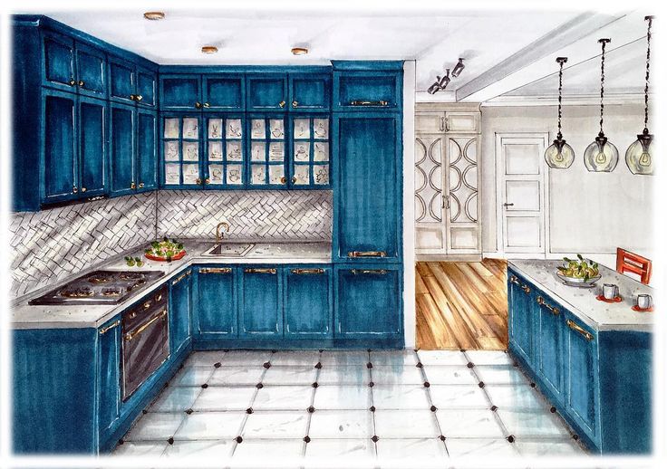 Красивый рисунок кухня-студия.