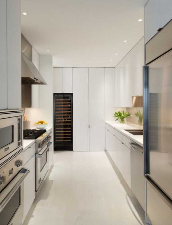 Идеальный цвет стен и высокой мебели для узкой или маленькой кухни в стиле хай тек – белый
