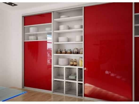 Шкаф высотой до потолка эти недостатки исключает: продукты, утварь, посуда находятся за закрытыми створками и «испытаниям» не подвергаются. Это, кстати, лишний плюс при хранении солений и варений.