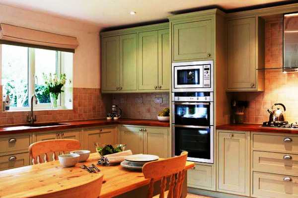 Деревянные элементы кантри-стилистики отлично вписываются в традиционную обстановку классических кухонь.