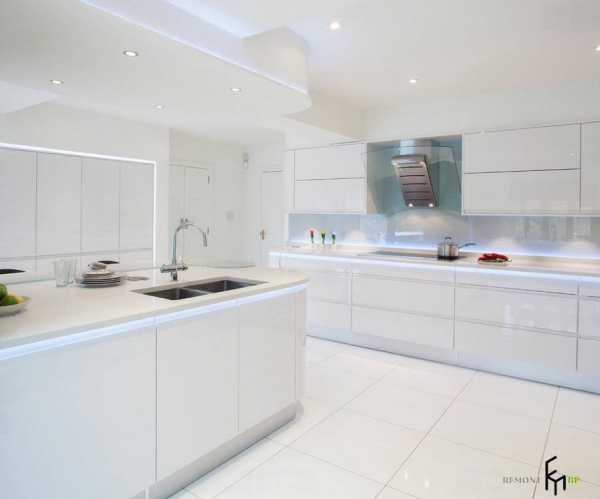 Белоснежная отделка поверхностей кухни
