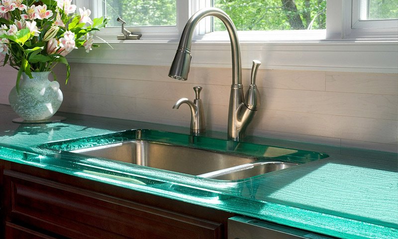 Стекло придает особую элегантность кухне, можно выбрать различные цветовые решения, не боится воды и температуры. Сложность очистки и низкая стойкость к ударам делают его менее привлекательным.