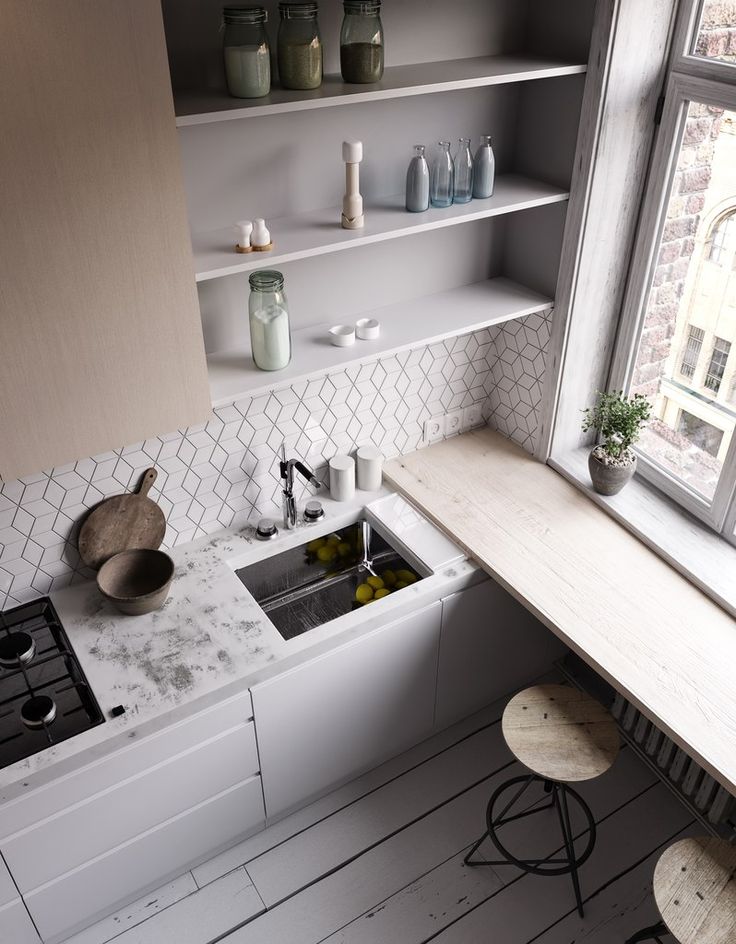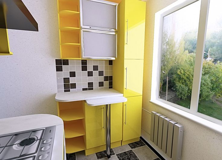 - Стол на маленькой кухне можно установить складной, прикрепив столешницу к широкому подоконнику.