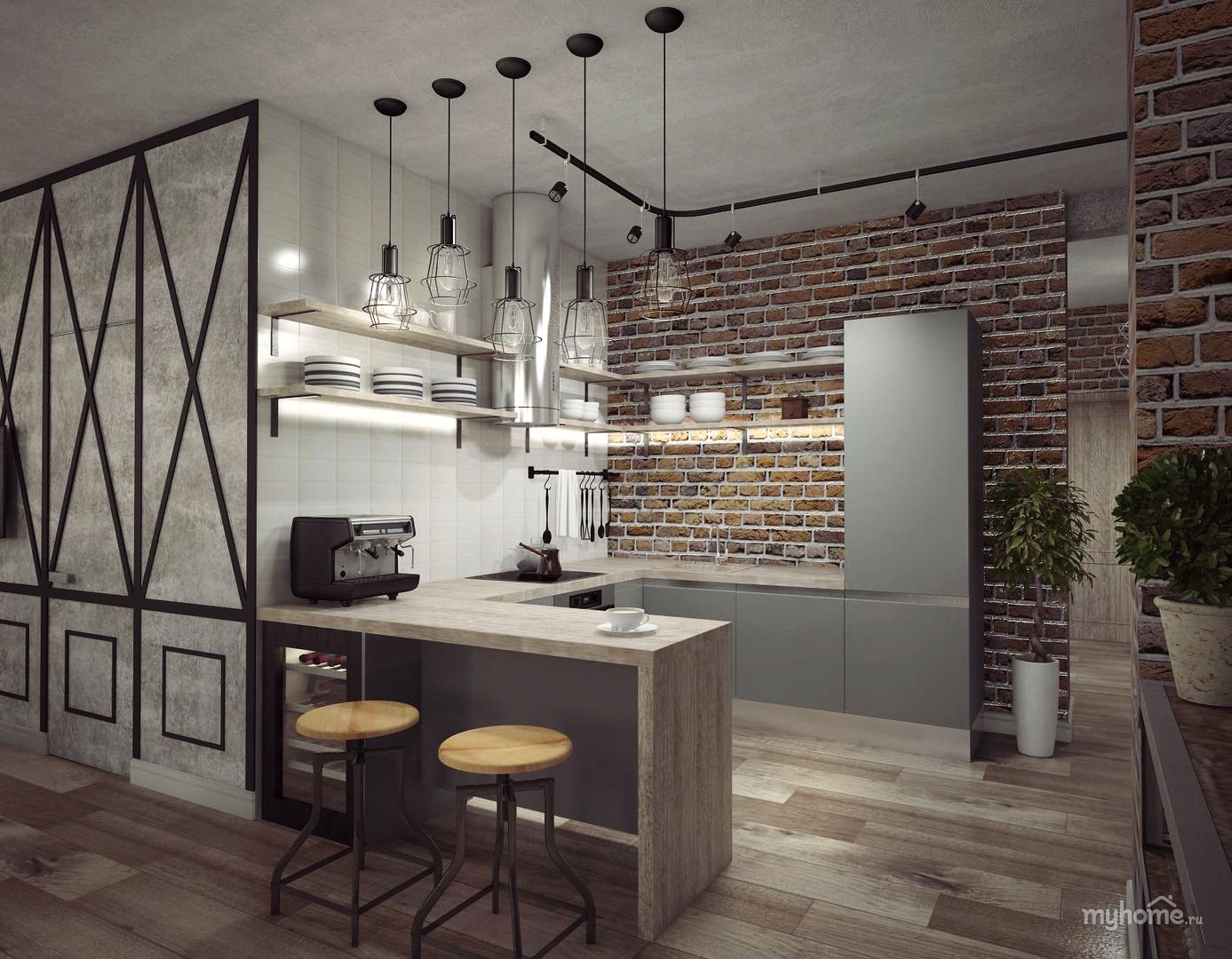лофт, кухнядизайн интерьера совмещенного помещения 22 кв.метра
