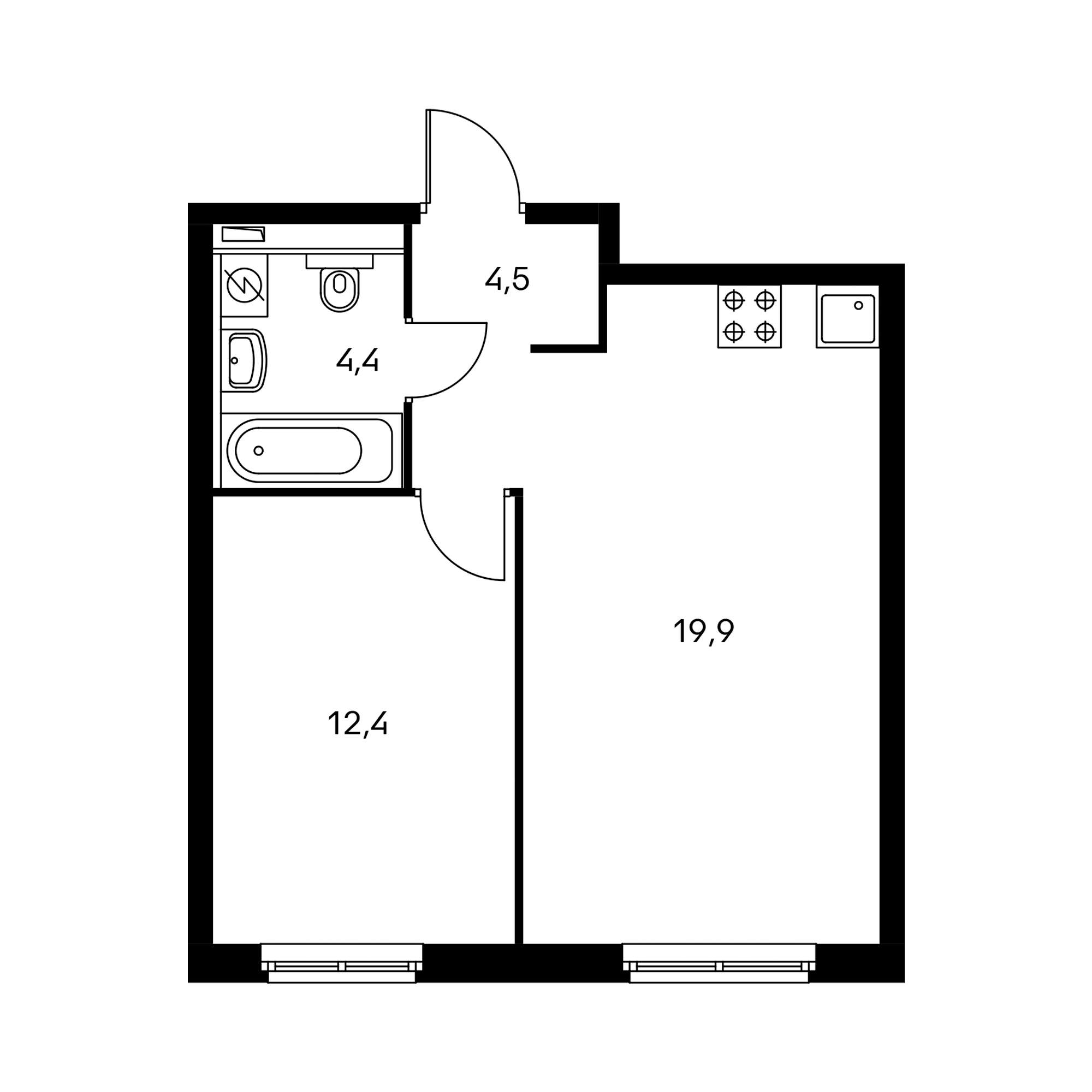 Общая площадь: 41.05 м2 Жилая площадь: 18.52 м2 Площадь кухни: 7.4 м2 |
