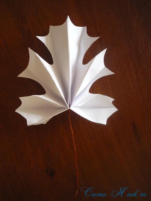 - вырезаем листик по контуру, чтобы все мелкие детали были соблюдены, лучше использовать маникюрные ножницы;