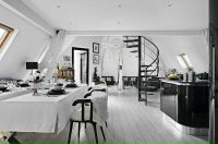 Интерьеры в стиле лофт чаще всего ассоциируются с довольно разношерстными и цветастыми помещениями, в которых серый бетон соседствует с красным кирпичом, белым пластиком, деревянными светильниками и люстрами. Однако наиболее аристократичные версии апартаментов а-ля «industrial style» могут позволить себе отклониться от полихромности и выбрать такой эксцентричный вариант расцветки, как белый.