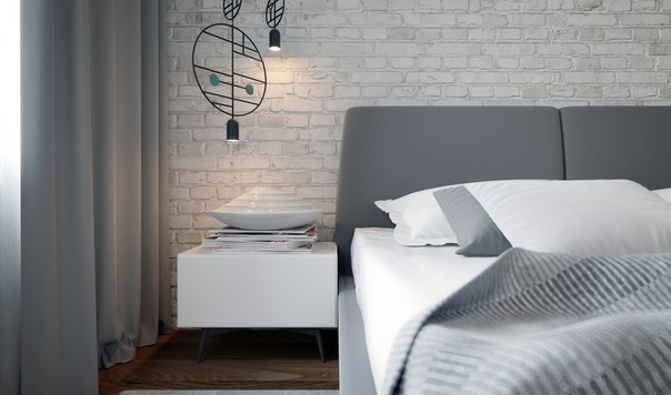 Декорирование квартир или комнат в белых тонах очень перспективно. Чтобы сделать помещение интереснее, можно сформировать все стены в белом цвете, а одну сделать из красного кирпича или его имитации. Полы рекомендуется покрывать природной древесиной высокого качества. Для украшения пространства рекомендуется применять чёрно-белые картины и светильники нестандартного вида. На кухне светлый окрас типичен: