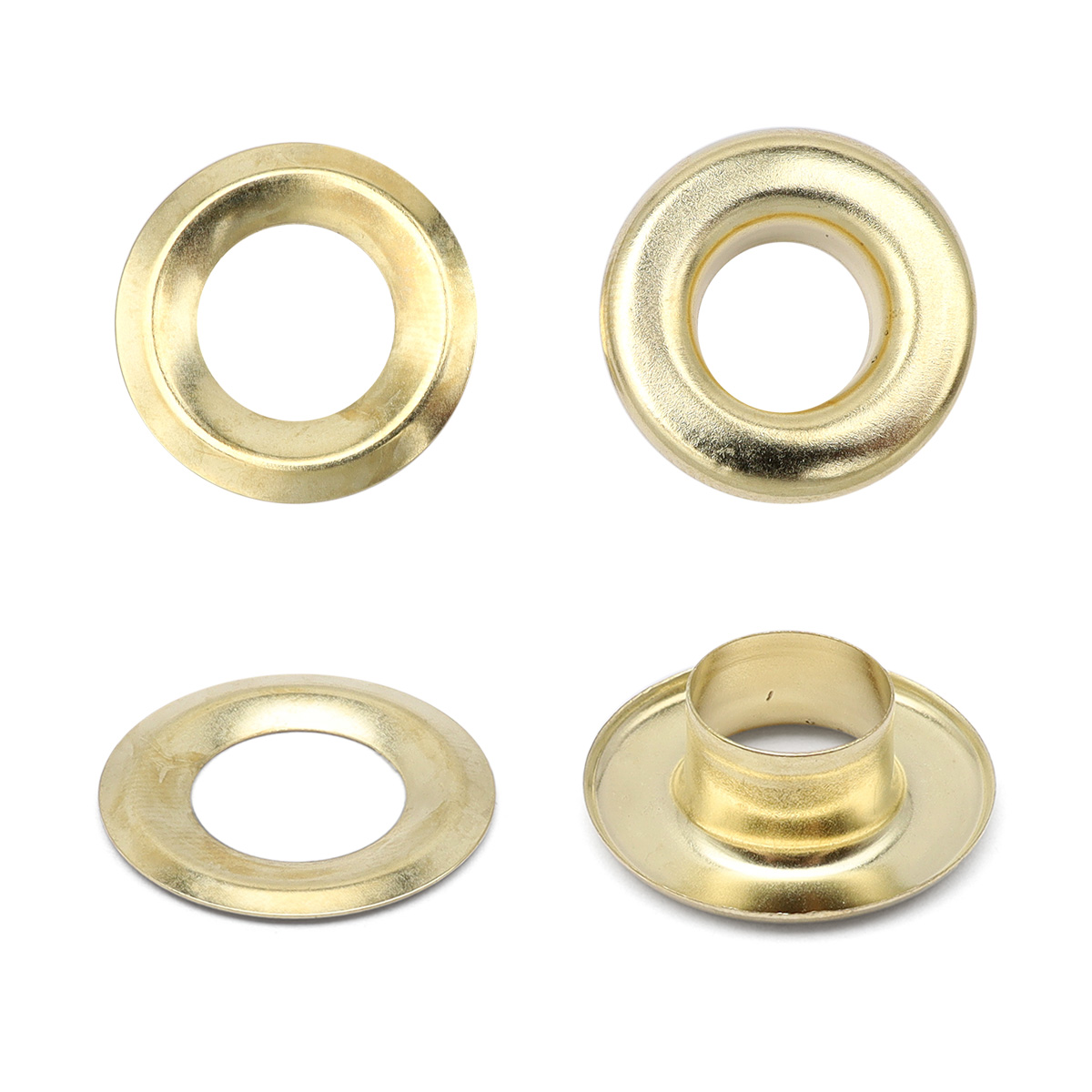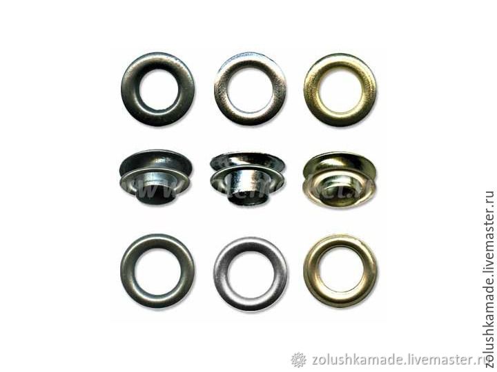 Существуют люверсы разной формы, диаметра, дизайна, изготовленные из металла, пластика или дерева. Эти характеристики элементов обязательно учитывают при выборе.