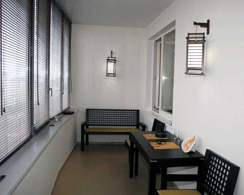 - Каким будет вид лоджии изнутри зависит от того, для чего её планируют использовать. Отделка стен и потолка лоджии материалами светлых тонов обеспечит отражение солнечного света на пол. Если пол на балконе, наоборот, отделать стройматериалами тёмных тонов, напольное покрытие будет работать как пассивный источник тепла.
